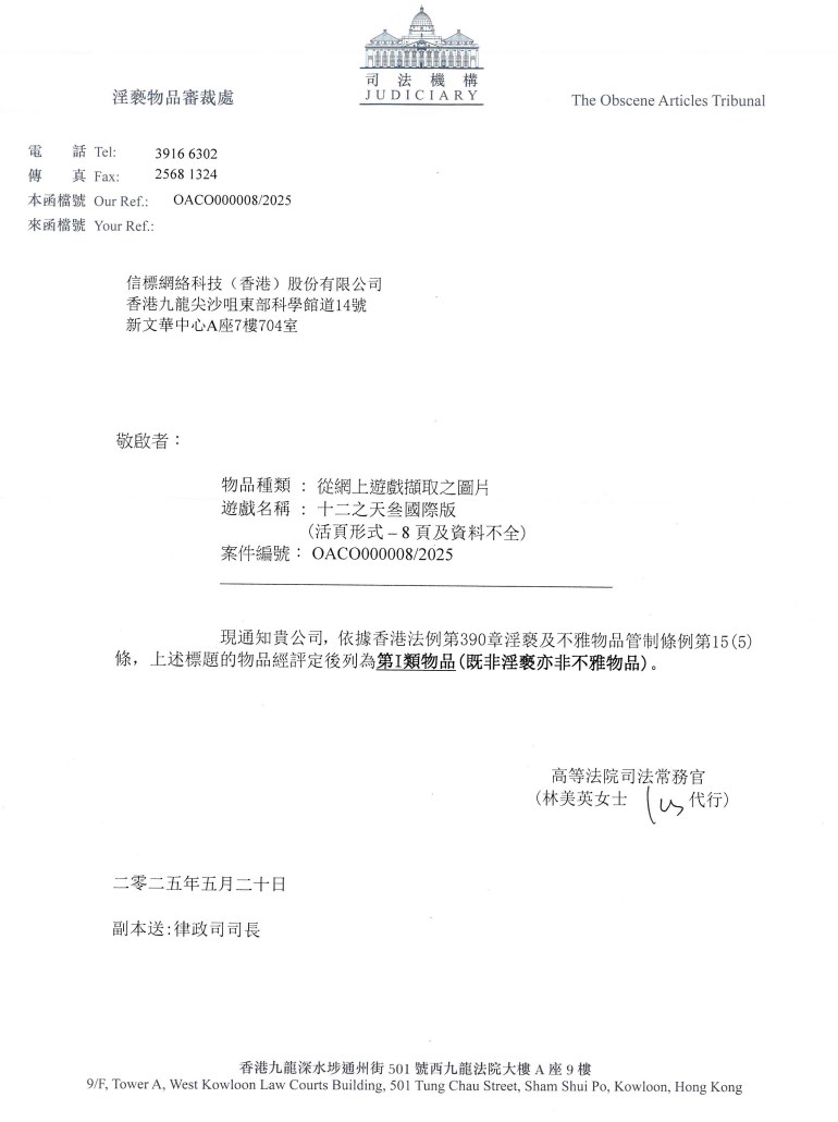 Hong Kong Judicial Tribunal Rating: OACO000006/2025 OACO000007/2025 OACO000008/2025